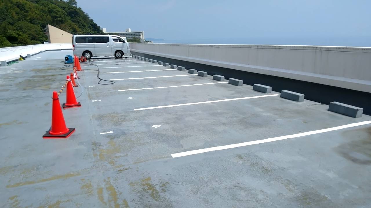 夏の終わりに…今年も熱海でお仕事をさせていただいております【屋上駐車場塗装】
